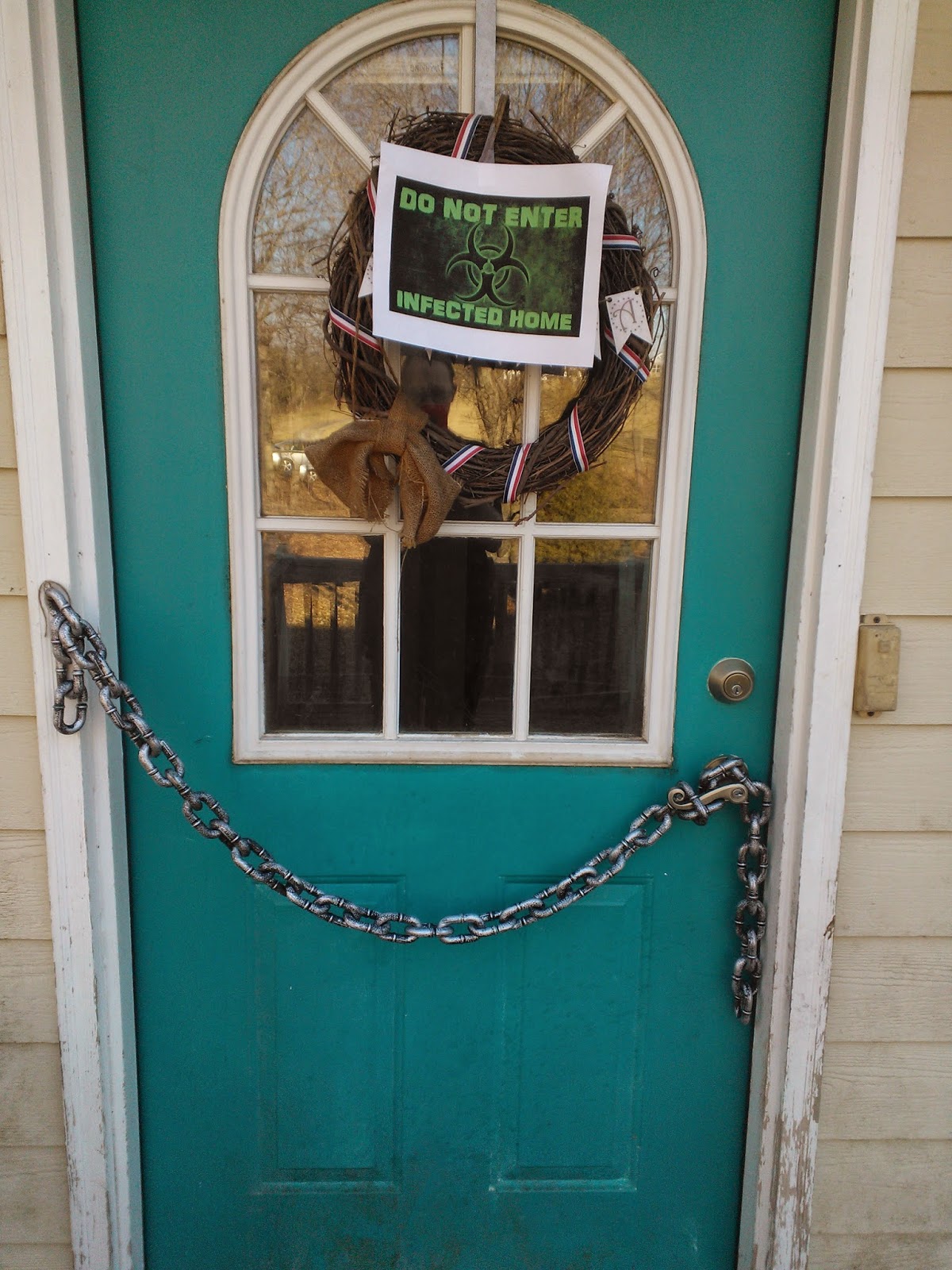 The front door! DO NOT ENTER INFECTED INSIDE! Chained shut (we'll for pre-tend)!